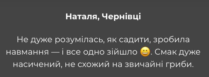 • 🍄Результат:: Через 1 місяць зʼявляться перші плоди. Один набір міцелію може давати врожай протягом кількох циклів!